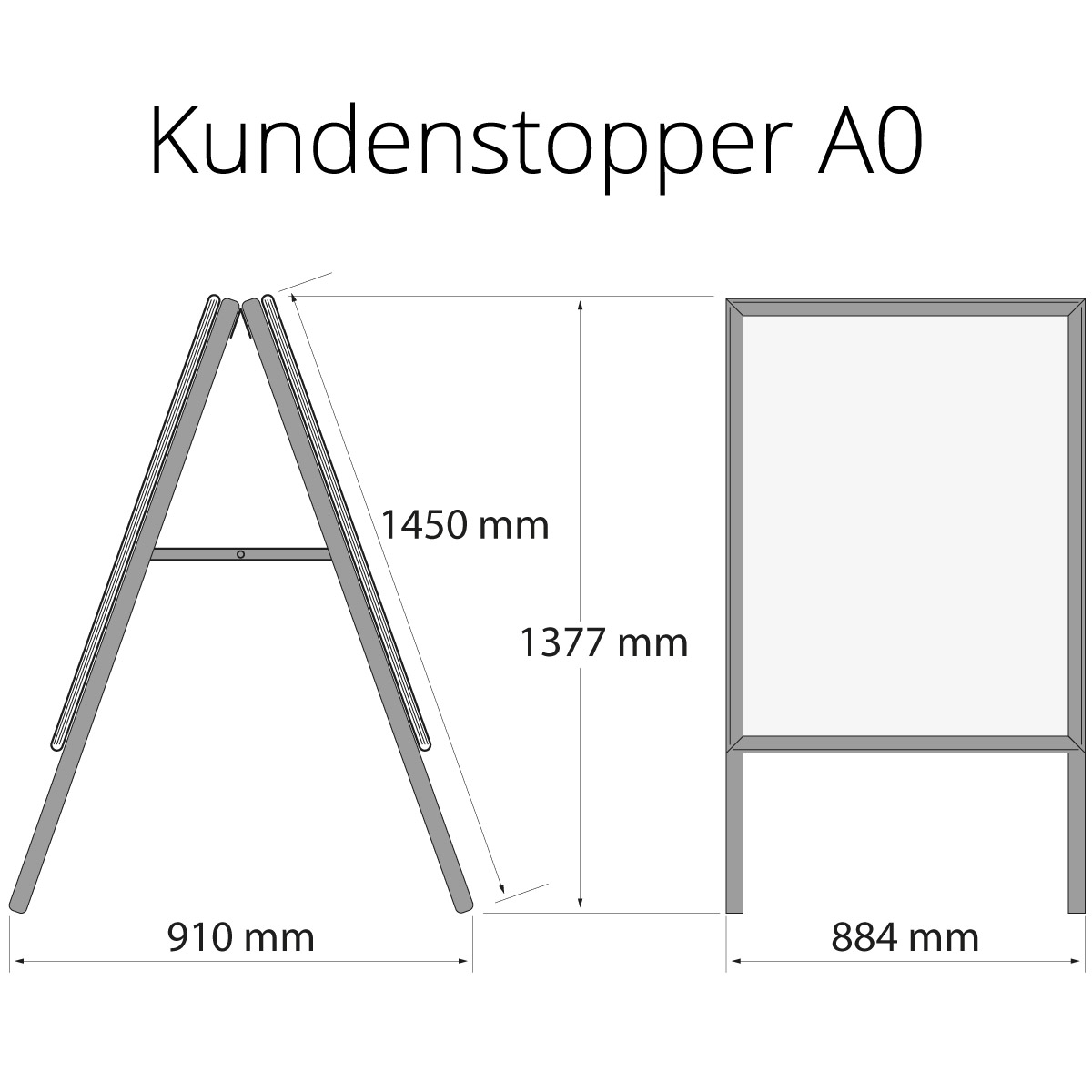 Kundenstopper A0: (H/B/T) 1450 x 884 x 910 - Höhe aufgestellt: 1377