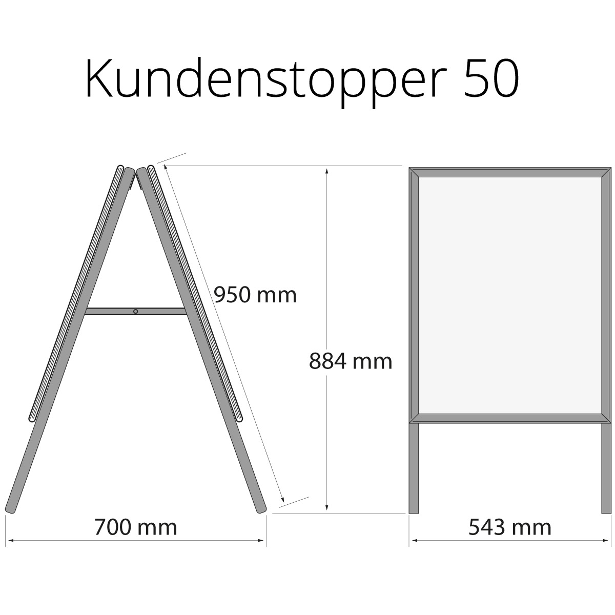 Kundenstopper 50: (H/B/T) 950 x 543 x 700 - Höhe aufgestellt: 884