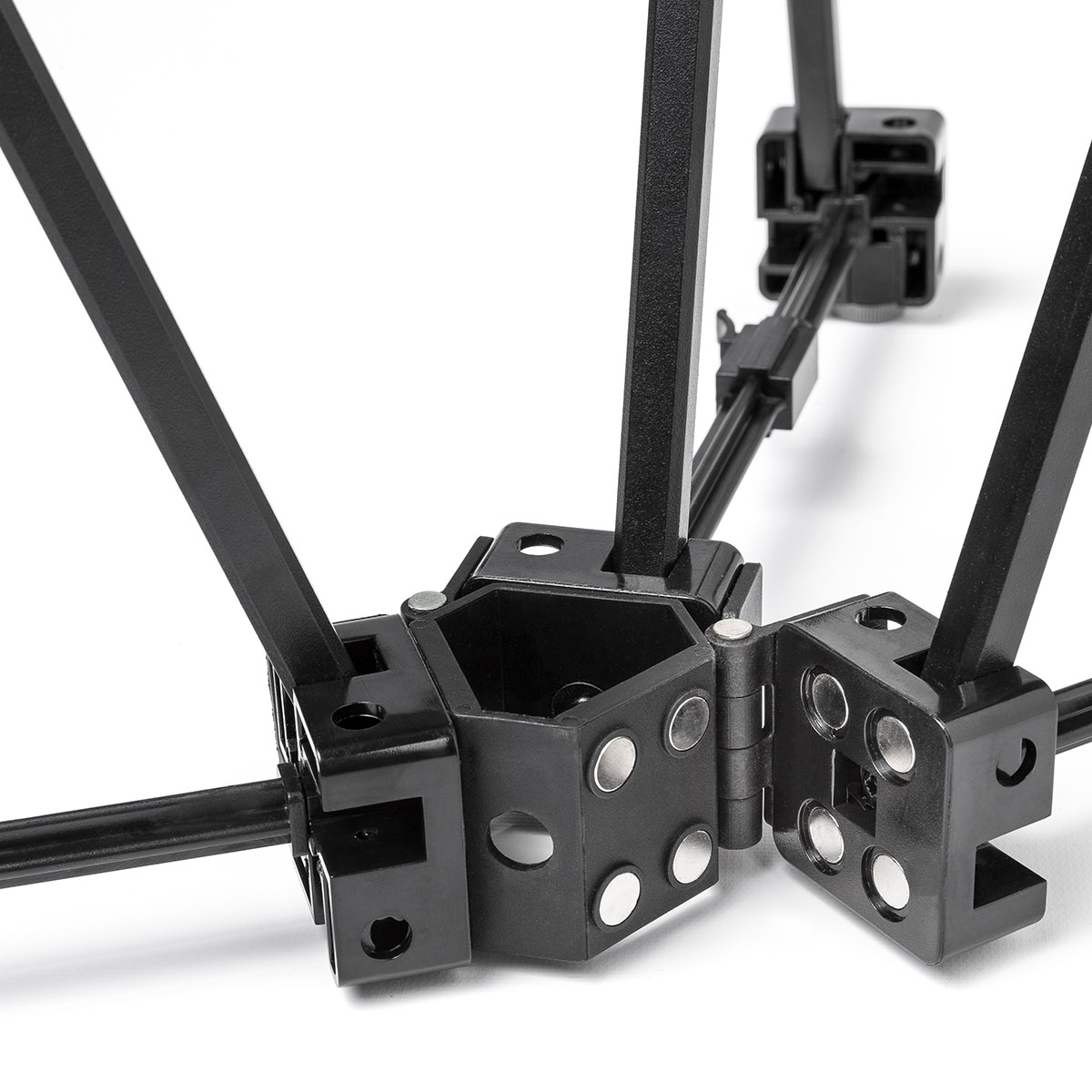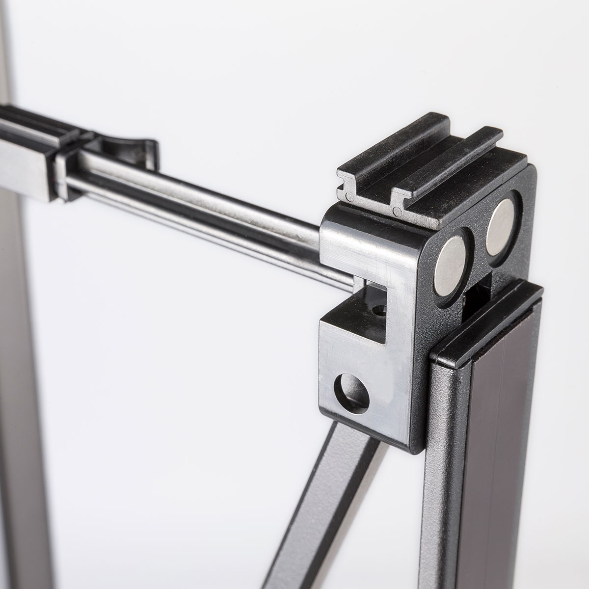 • mattschwarzer pulverbeschichteter Aluminiumrahmen mit patentierten Scharnieren und Magnetverriegelung