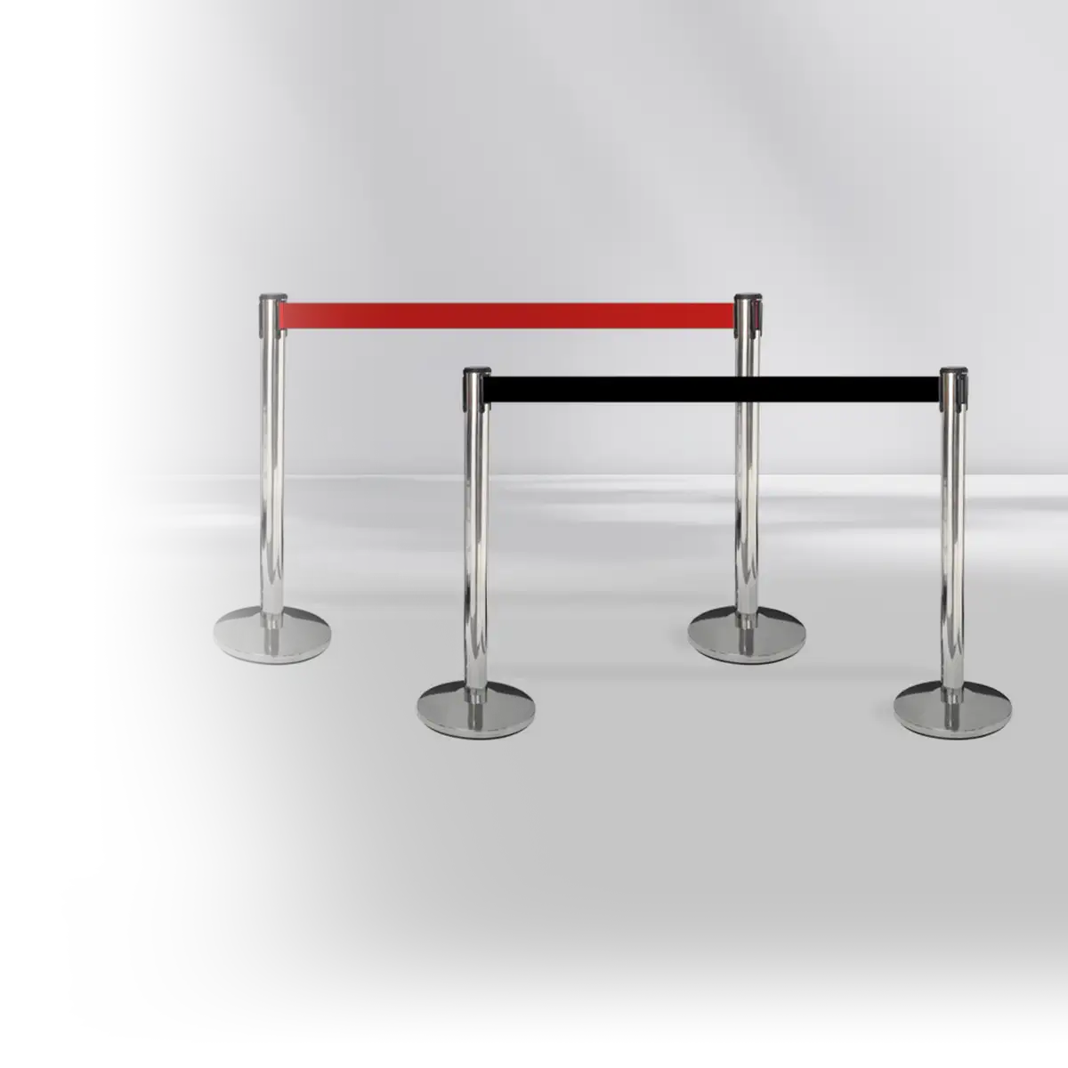 Dieser robuste Ständer aus Stahl bietet eine zuverlässige Lösung für effiziente Personenlenkung. Mit einer Höhe von 91 cm und einem stabilen Fuß (Ø 32 cm) steht er sicher in jedem Umfeld. Der integrierte, 3 Meter lange Gurt ermöglicht eine flexible Abgrenzung und Lenkung von Besucherströmen. Ideal für Eingangsbereiche, Messen, Flughäfen oder Veranstaltungen. Das zeitlose Silberdesign fügt sich harmonisch in jede Umgebung ein. Ein praktisches, langlebiges Leitsystem für geordnete und sichere Wegeführung.