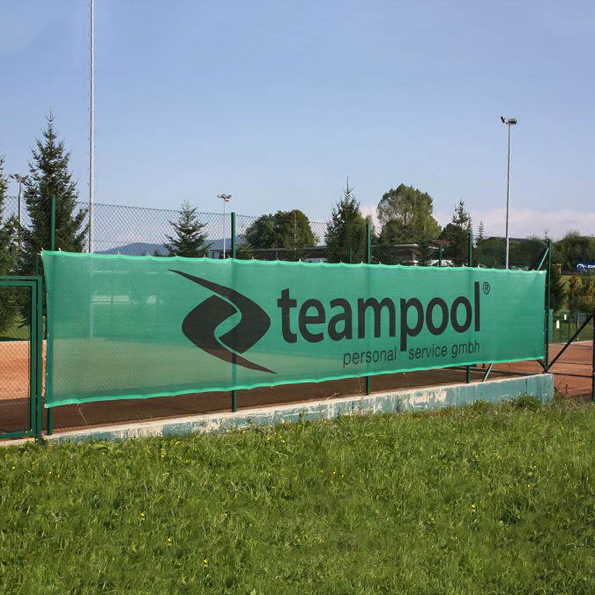 Unsere Tennisblende überzeugt durch hohe Qualität und verstärkte Ränder für maximale Haltbarkeit. Die dichte Maschenstruktur macht sie zum idealen Werbeträger. Erhältlich in vielen Farben und Größen. Wetterfest, langlebig und perfekt für den Tennisplatz.